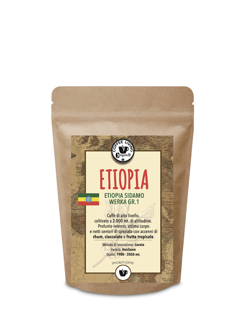 A coffee of the highest caliber, produced in the historic Sidamo region, grown at an altitude of about 2,000 meters, it is the finest and rarest of the arabica coffees from this land.